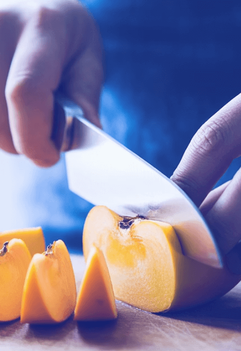 감은 흐르는 물에 깨끗이 씻은 뒤 껍질을 벗깁니다. 이때 손과 칼을 깨끗이 소독하면 곰팡이 발생 확률을 크게 줄일 수 있습니다. 껍질을 벗긴 감은 세로로 4~6등분하여 크기를 균일하게 맞춰주세요. 크기가 달라지면 건조 속도 차이로 품질이 떨어집니다.