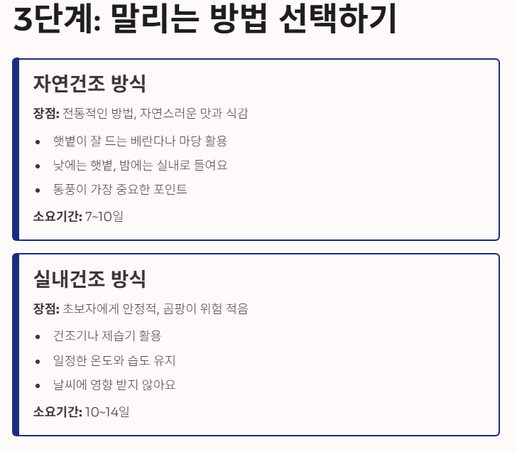 3단계: 감말랭이 말리는 방법 (자연건조 vs 실내건조)