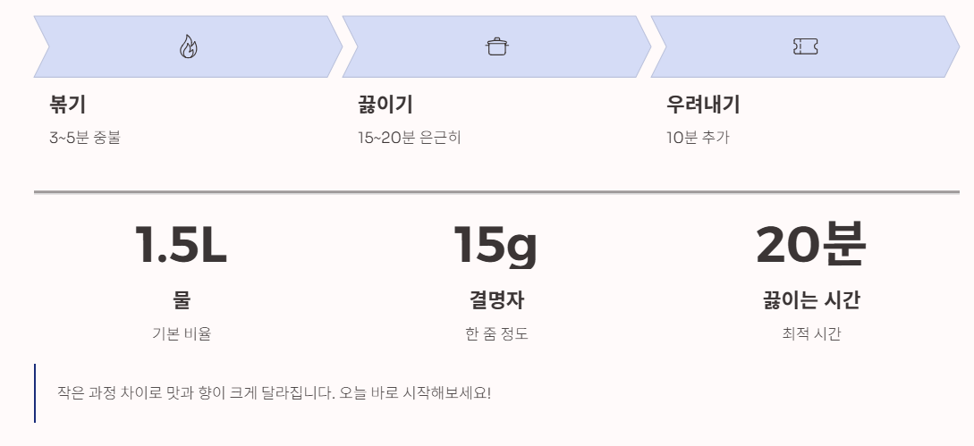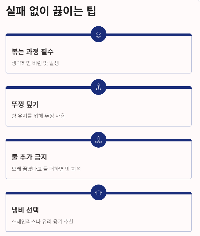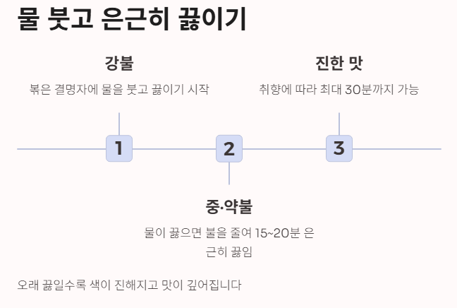 ✔ 오래 끓였다고 물을 더 붓지 않기 (맛 희석됨)