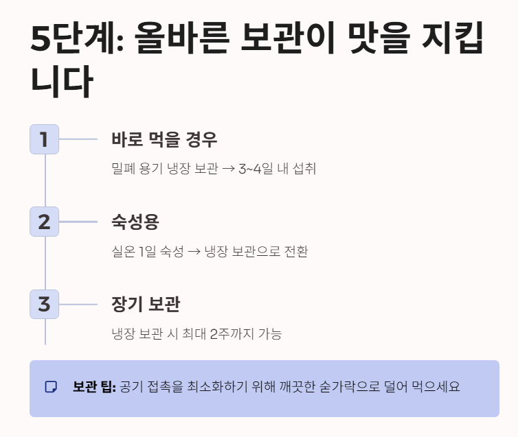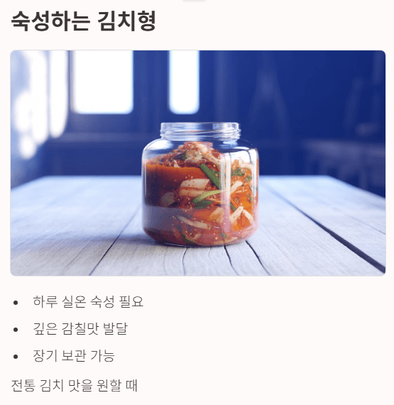 👉 시간이 없다면 무침형, 전통 김치 맛을 원한다면 숙성형을 추천합니다.