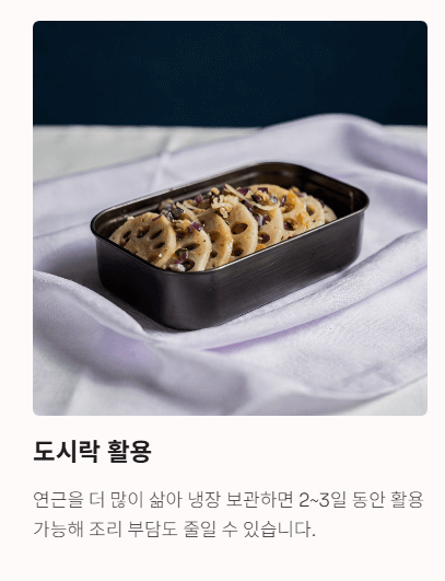 - 연근을 더 많이 삶아 냉장 보관하면 2~3일 동안 활용 가능해 조리 부담도 줄일 수 있습니다.