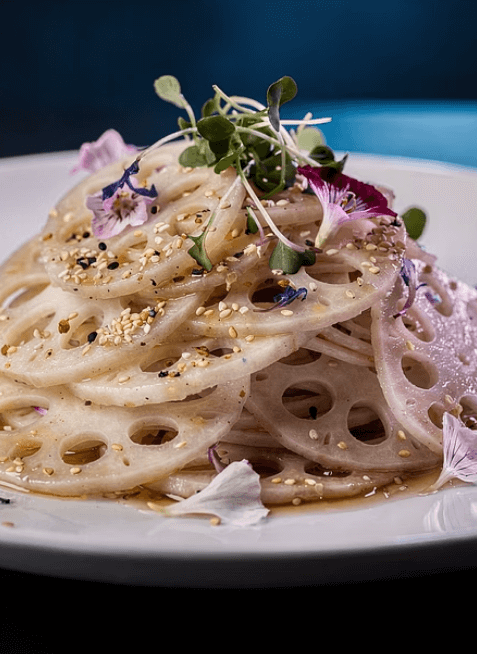 올리브오일 + 발사믹 드레싱은 향과 감칠맛을 극대화합니다. 풍부한 맛을 원하거나 연근을 처음 접하는 사람들에게 더 대중적으로 받아들여지는 옵션입니다. 견과류와 함께 먹으면 고급스러운 풍미도 살아납니다.