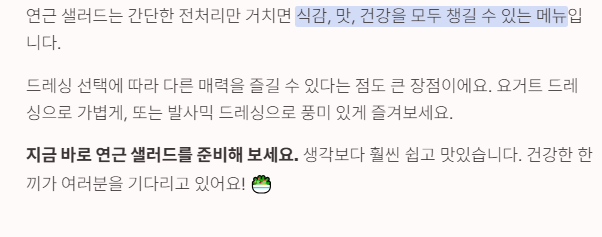 - 연근 샐러드는 도시락 또는 홈카페 플레이트로 활용하기 좋습니다.